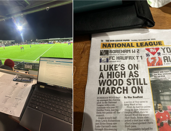 LinkedIn post recapping my first in-person press box report with the NLP in months. Incorporated quotes from both Wood manager, Luke Garrard, and one of the scorers, Lewis Richardson.